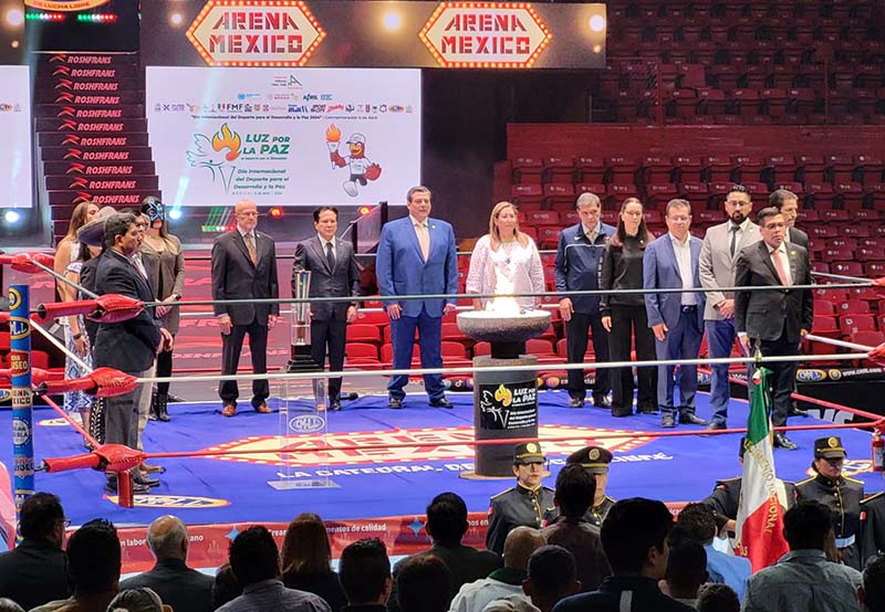 Ciudad de México – En la catedral de la lucha libre mexicana, en el ring sagrado de la Arena México y con base a la convocatoria de la Fundación Alfredo Harp Helú Deporte, los líderes de diversas organizaciones del deporte profesional, olímpico y paralímpico encendieron la antorcha de la “Luz por la Paz y el Bienestar”, que recorrerá desde el 6 de marzo al 6 de abril de 2024 diversos sitios emblemáticos de México.