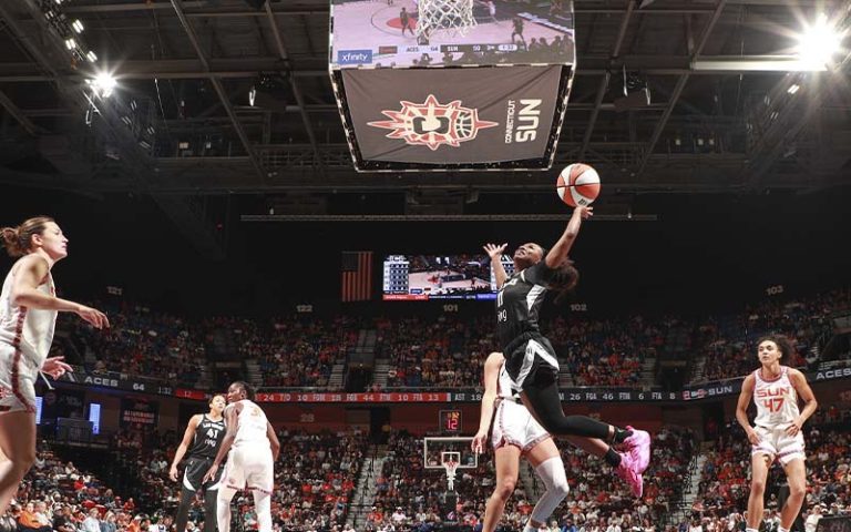 DiJonai Carrington marcó 19 puntos para las Sun A’ja Wilson anotó 26 puntos y atrapó 16 rebotes cuando Las Vegas...