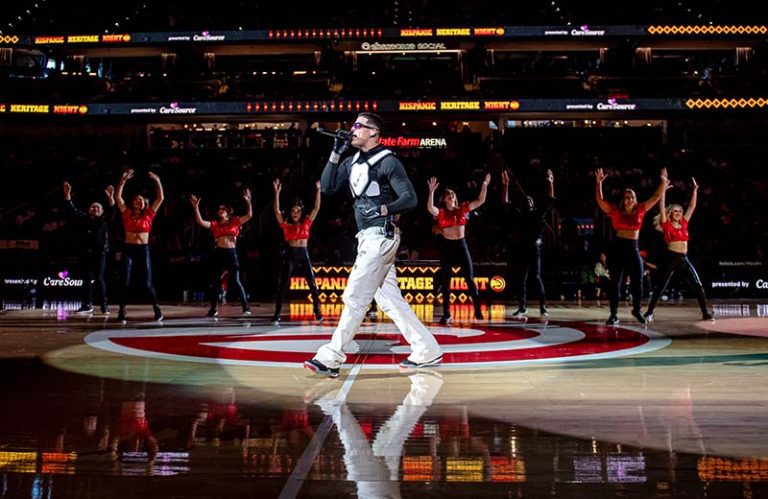 Presencia latina en el medio tiempo del partido de los Hawks como parte de la “Noche de la Herencia Hispana”...